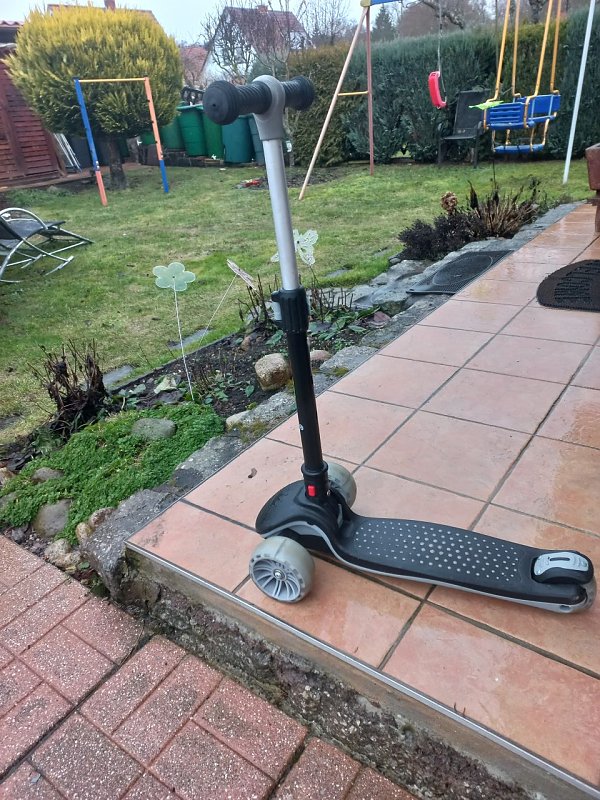 Die hochwertige Verarbeitung der Lenkstange aus eloxiertem Aluminium sieht nicht nur gut aus, sondern schützt auch vor Korrosion. Dank der praktischen Klappfunktion ist der Dreirad-Roller einfach zu transportieren und zu verstauen.