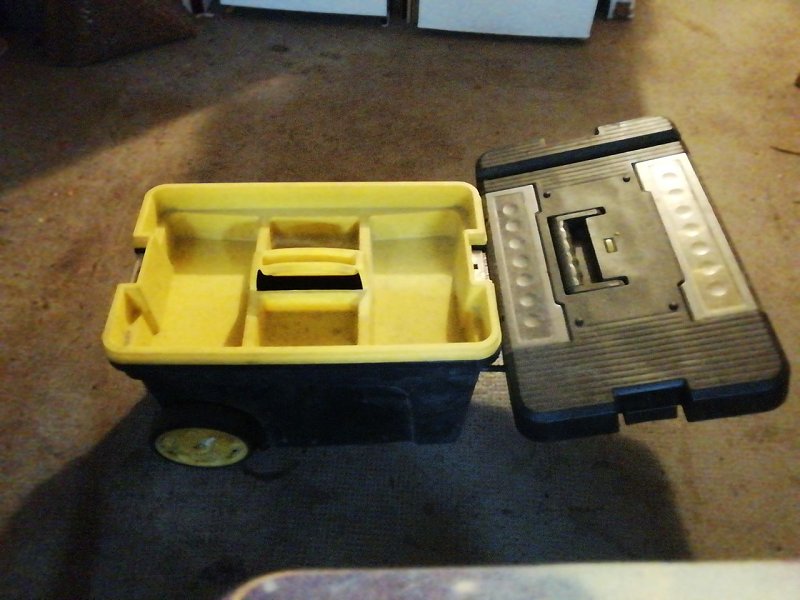 Grosse Werkzeugkiste mit Rollen von Stanley, mit gelbem Einsatz für Kleinteile.VB : 20 €