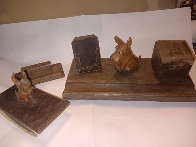 Verkaufe nostalgische Schreibtischgarnitur 3 Teilig , echt Holz geschnitzt , scheinbar aus den 30 er Jahren