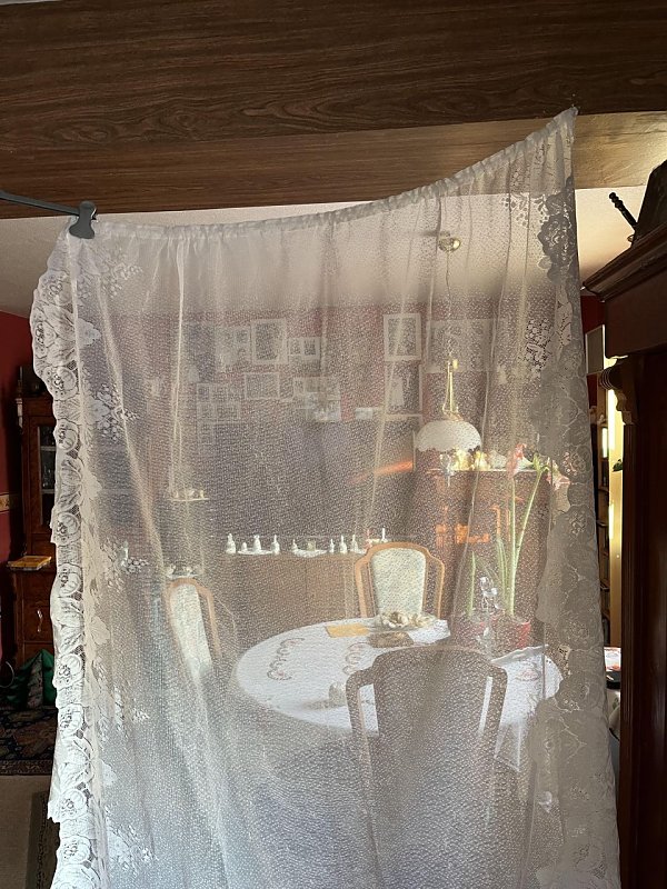 Biete: Sehr schöne Gardine, 2 Scheibengardinen und 2 Seitenschals gebraucht