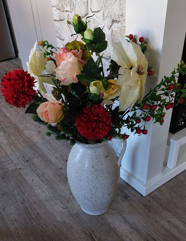 Gewicht 4 Kilo. Also fällt sie nicht so schnell um.