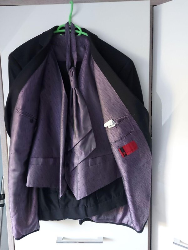 Sehr gut erhaltener Anzug als 4 Teiler ,Jacke,Hose,Weste+ Schlips in Gr. 54
