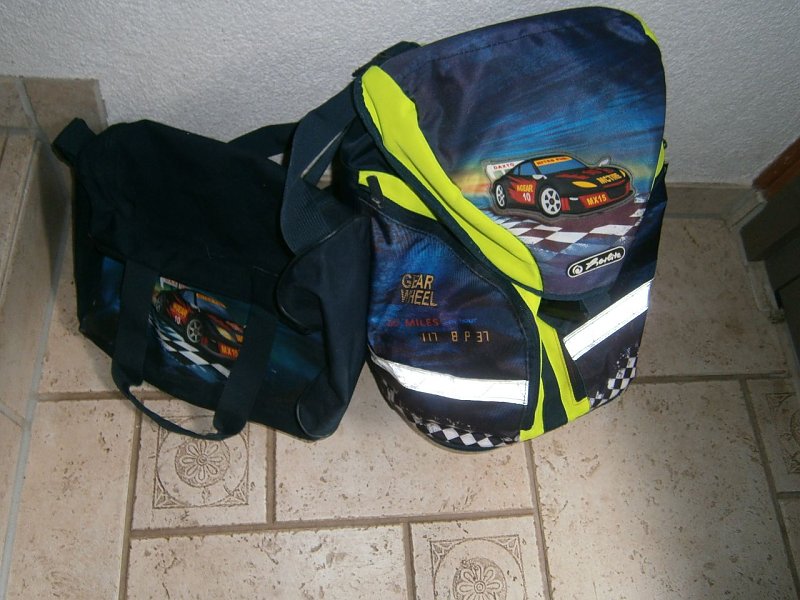 Biete: Herlitz Schulrucksack mit Motiv Auto dazu Sporttasche