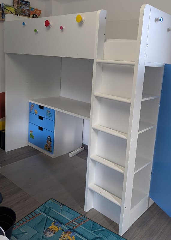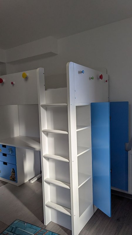 Biete: 130 €: IKEA Hochbett SMÅSTAD, weiß blau/mit Schreibtisch