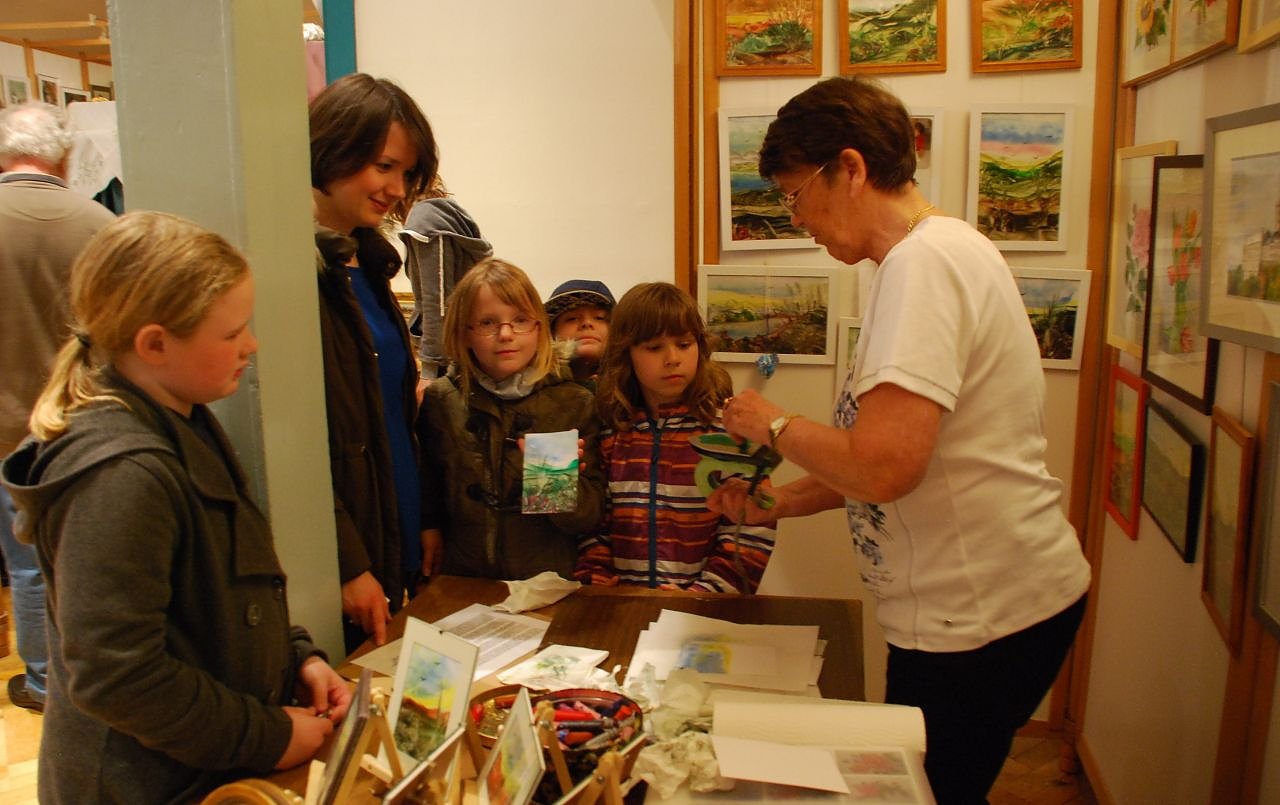 Die Kunstausstellung geht auf eine Initiative von Michaela Horlbog und Werner Thurm zurück. Im Jahr 2010 initiierten sie die erste Ausstellung im Kinderhaus "Marianne und Gerhard Rohne". Aus der kleinen, feinen Aktion wurde etwas, das inzwischen sogar den Sonnensaal zu sprengen droht. Gemeinderat Sven Lange ist begeistert: Das ist ein absolutes Phänomen. Das Interesse war so groß, dass wir 20 Interessenten absagen mussten. Das hat uns leid getan, ging aber nicht anders, weil wir die Galerie ja nicht mehr nutzen dürfen. Was einhundert Jahre lang ging, soll plötzlich nicht mehr gehen, weil die Galerie keinen zweiten Ausgang hat, also wurde diese für die Nutzung gesperrt. Die Konsequenz für die Gemeinde: Um auch diesen attraktiven Platz nutzen zu können, müssen mehrere zehntausend Euro für einen Durchbruch und eine Treppe von außen investiert werden.