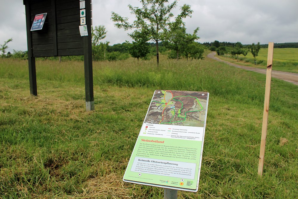 Dieser quasi Obstgarten passt zum Kyffhäuser und er ist gut mit dem Auto zu erreichen. Aber auch von der Stadt Bad Frankenhausen aus (Weg nahe Friedhof in Richtung Panorama immer gerade aus, aber etwas steil!). Da es sogar noch Obstbäume ohne Namen gab, regte Hochwind an, mit Schulen einen Wettbewerb zur Namensfindung zu machen.