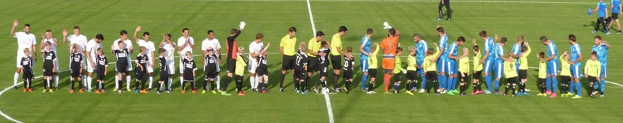 Die Mannschaften laufen auf. Beifall von de Rängen.