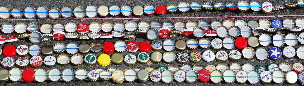 117.040 Kronkorken aufreihen - wer hat so viel Geduld? Nun, geholfen haben viele, doch den Mammutanteil haben Marianne und Klaus Elzner übernommen. Die Härte: Es durfte nicht einfach nur ein Loch in der Mitte sein, das zum Auffädeln der kleinen Metalldeckel ja genügt hätte, nein, es wurden zwei Löcher in jeden Deckel gebohrt, und zwar jeweils gegenüber in den umgebogenen Rand mit den 21 Zacken. Folglich musste der stabile Draht, der als Schnur diente, auch durch 234.080 Löcher gefädelt werden.