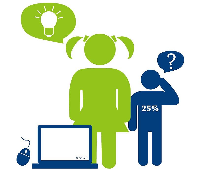 In Auftrag gegeben wurde die Studie von VTech, Marktführer für elektronisches Lernspielzeug.* Einer von vier Befragten gibt an, dass bereits fünf bis acht Jahre alte Kinder ihnen technisch überlegen seien. ​