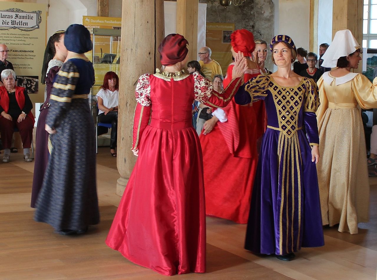 Höhepunkt des Vormittags ist das Programm Erschallet Trompeten 2016, Beginn um 10:30 Uhr im Bankettsaal. Die Gruppe Dansereie 1327, unter Leitung von Eva Solacolu, haben wieder über viele Wochen ihr Programm geprobt. 12 Tänzerinnen und in diesem Jahr drei Ehepaare führen Tänze der Renaissancezeit auf, mit dabei sind Raja-Rosa Krenz, Helmut Wagner und Thea Zschernig mit Soloauftritten.