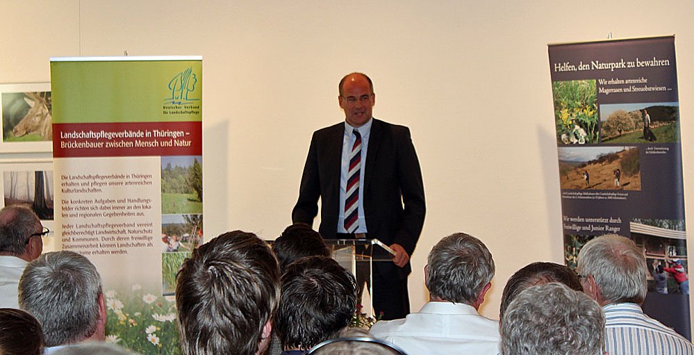 Landrat Matthias Jendricke (SPD) nahm den "Ball" auf und meinte, uns sollte aber vor der Gebietsreform nicht Bange sein. Jendricke überbrachte die Grüße der Landrätin Antje Hochwind (SPD) Kyffhäuserkreis, die bei einer anderen Veranstaltung weilte. "Letztes Jahr haben wir den den gemeinsamen Tourismusverband Südharz- Kyffhäuser gegründet. Der Baustein Natura 2000 sei da ein wichtiges Glied."