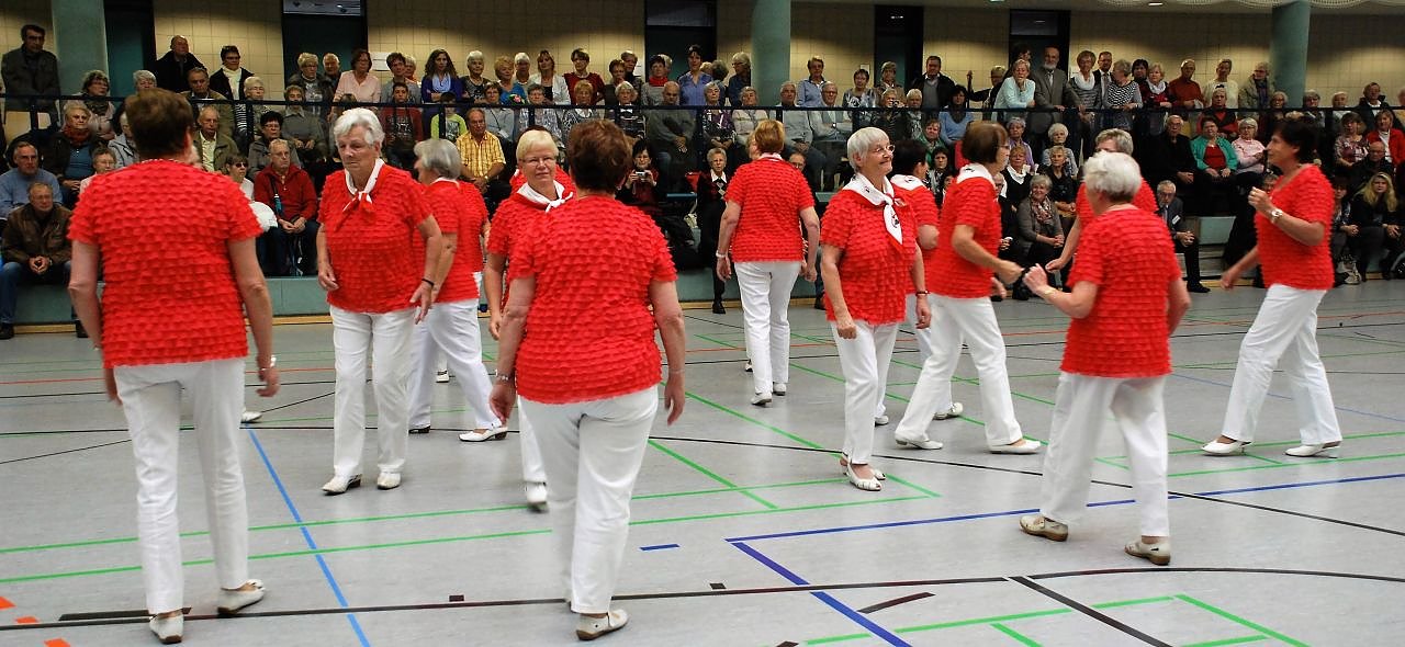 Seniorentanz schafft Kontakte und sorgt für Bewegung. Die Red roses Ladies der Arbeiterwohlfahrt Sangerhausen begeisterten beim Seniorenforum 2015. (Foto: Jochen Miche)