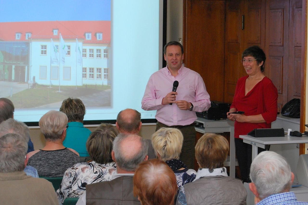 Krankenhaushygienikerin Dipl.-Med. Birgit Saul und Dr. Andreas Birke, Chefarzt der Orthopädie und Unfallchirurgie, erläuterten diese gemeinsam bei einem Vortrag, der auf großes Interesse stieß. Neben speziellen Waschlotion und Nasengel zur Verringerung der Anzahl der Bakterien auf der Haut schon vor der OP und einem Screening von Risikopatienten setzt die Klinik auf ein straffes Hygieneregime.