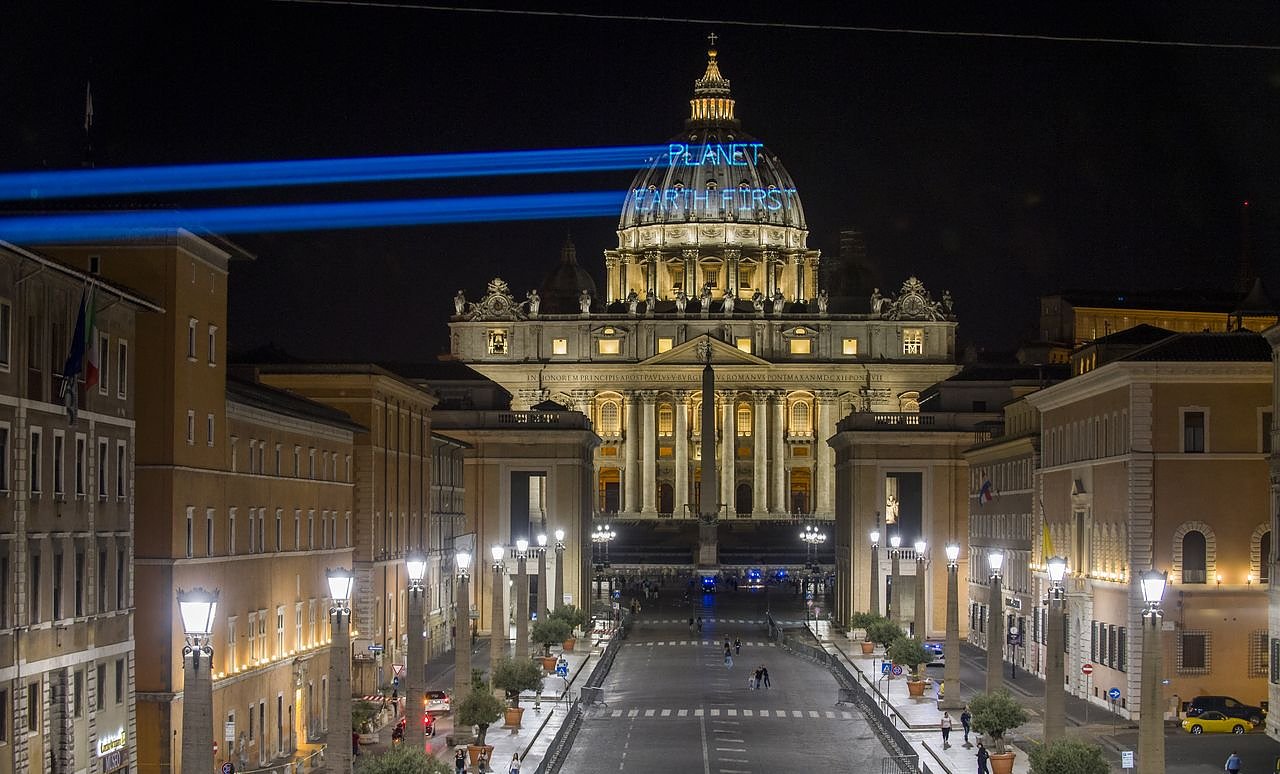 Wenige Stunden vor dem Treffen zwischen Papst Franziskus und US-Präsident Donald Trump haben Greenpeace-Aktivisten am frühen Mittwochmorgen in Rom für mehr Klimaschutz demonstriert. Auf die Kuppel des Petersdoms projizierten sie aus rund 800 Metern Entfernung mit Laserstrahlen die Botschaft Planet Earth First! als Antwort auf Trumps Regierungsmotto America First!...