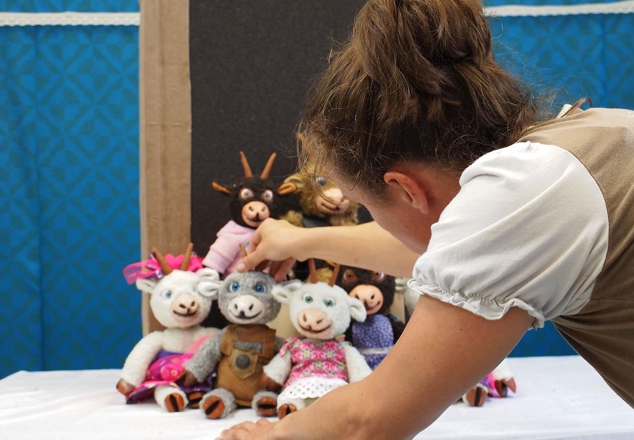 Die Hauptdarsteller sind nicht die größten und auch nicht aus Fleisch und Blut, aber sie werden Kinder und Erwachsene garantiert begeistern. Rotkäppchen, der böse Wolf, die sieben Geißlein und viele andere Akteuere sind Puppen und die sehen einfach toll aus. Schaut selbst. Lebendig werden die Figuren durch das tolle Spiel von Kerstin Dathe und Uta Krieg.