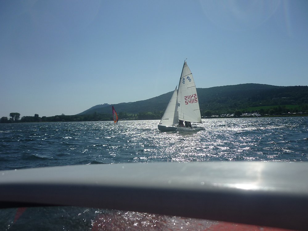 Weil der Wind immer schwächer wurde, lockerten die Betreuer der Optimistengruppe die Stimmung mit einem Paddelwettbewerb der Optis auf. Die Großen nutzten die Bedingungen für gewollte Kenterungen und das Wiederaufrichten der Boote im Wasser. Für jeden der das Aufrichten des Bootes nach einer Kenterung gut beherrscht, ist Kentern ein Manöver wie Wende und Halse.