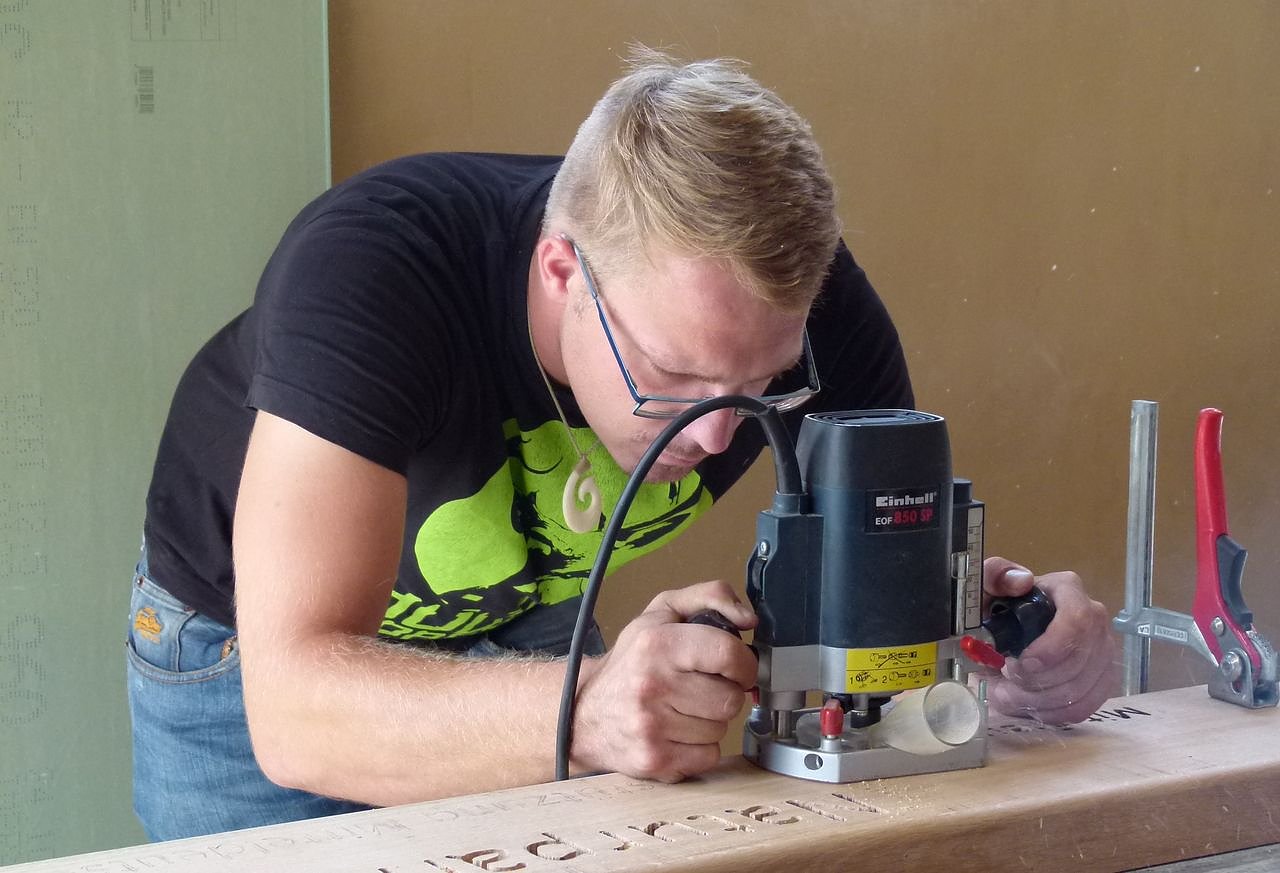 Der gelernte Zimmermann ist geübt im Umgang mit der Oberfräse und so bereitete ihm der Schriftzug in der Eichenbohle keine Probleme. Der 29-Jährige aus dem Raum Fulda studiert in Erfurt Forstwirtschaft und Ökosystemmanagement: Ich möchte nach dem Studium im Naturschutz tätig werden. Torsten Liebau überreichte eine Tasche mit vielen nützlichen Utensilien wie einem Erste-Hilfe-Set.