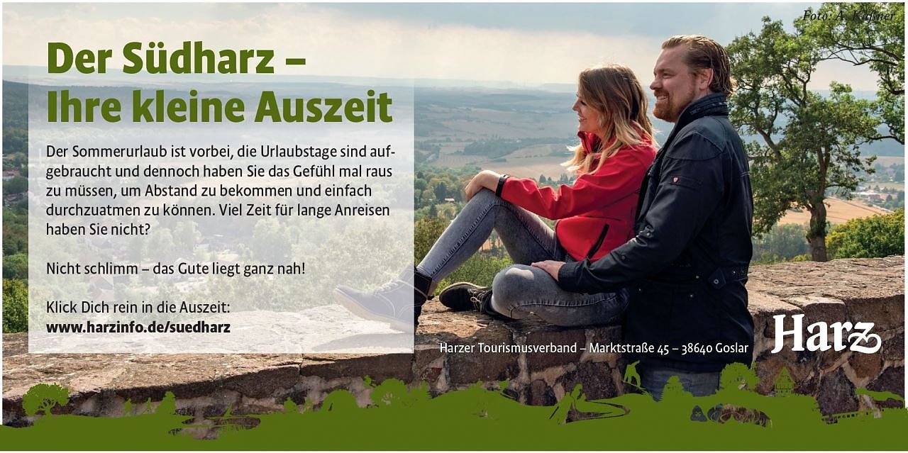 Um darüber hinaus den Harz nachhaltig bei den potenziellen Besuchern zu platzieren, entschied sich der Verband für eine Fortsetzung der Kampagne 2017 in den schon damals gewählten Quellmärkten Leipzig und Göttingen. Inhaltlich wurde das nachsommerliche Gefühl aufgegriffen - der Urlaub sei vorbei, die Sommerzeit geht zu Ende und dennoch sehnt man sich nach einer Auszeit…..- dann ist der nahegelegene Südharz genau das richtige Reiseziel.