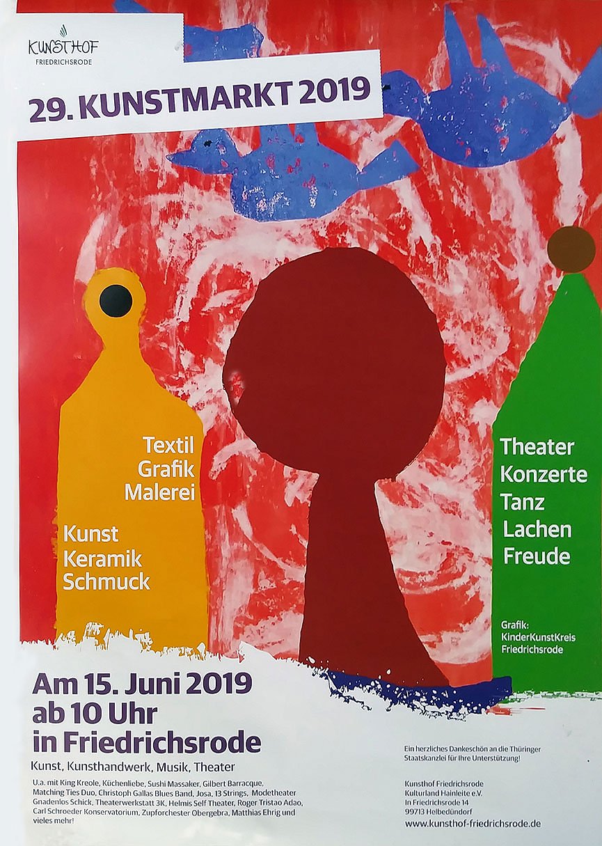 Das Künstler Line-Up findet sich hier: https://kunsthof-friedrichsrode.jimdo.com/29-kunstmarkt-2019/