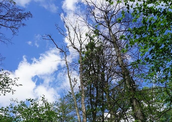 Seit Mitte Mai ist unter anderem in den ausgedehnten Buchenwäldern des Forstamtes Sondershausen ein erschreckendes Phänomen festzustellen: Insbesondere Altbuchen zeigen kein oder nur spärlich neues Laub. Die Kronen der Bäume sind stattdessen trocken, das Feinreisig ist bereits abgefallen, oft ermöglichen nur wenige grüne Äste im unteren Teil der Baumkrone das Überleben.