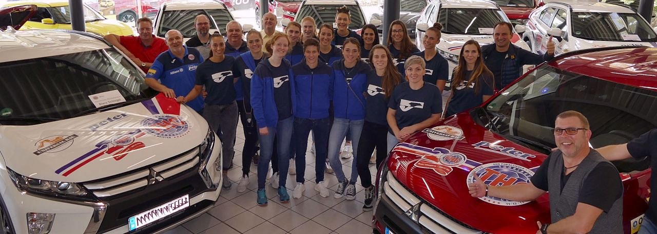 Nach einer fachlichen Einweisung in die schicken SUV mit 4,40 Metern Länge und 1,80 Breite durch Mitsubishi-Verkaufsleiter Jens Kupfer und Verkaufsberater Benjamin Bösenberg starteten die THC-Damen als Eclipse-Kolonne in Richtung Wiedigsburghalle durch. Gas geben wollen sie heute auch dem Parkett. Das versprachen sie Helmut Peter und Robert Böhm stellvertretend für alle Sponsoren, Förderer und Fans!