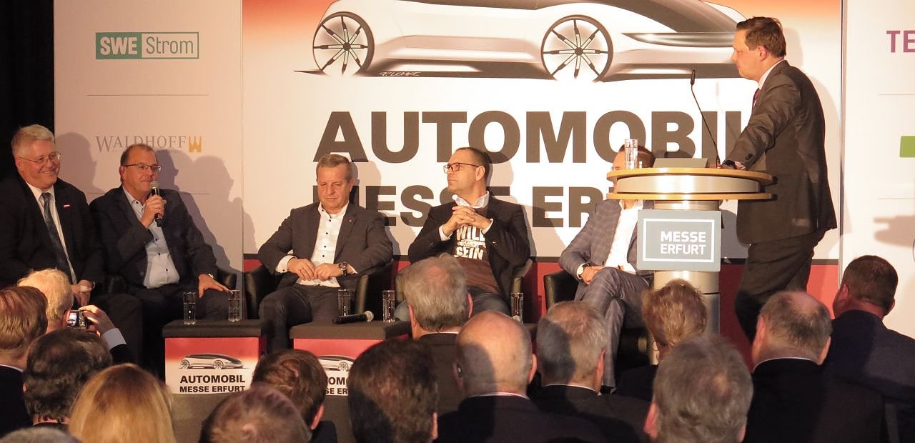 Mit dem Moderator Michael Tallei, dem Geschäftsführer der Mediengruppe Thüringen, diskutierten der Hauptgeschäftsführer der Erfurter Handwerkskammer, Thomas Malcherek, der Chefredakteur der Fachzeitschrift Autohaus, Ralph Meunzel, der Vizepräsident des Zentralverbandes des Deutschen Kraftfahrzeuggewerbes, Thomas Peckruhn, der Geschäftsführer des Thüringer Landesverbandes, Dietmar Hoffmann und Florian Meyer als Vorstand der GeAT AG Erfurt. Zentrales Thema war in diesem Jahr Personal. Genauer gesagt, das Spannungsverhältnis zwischen dem tatsächlich vorhandenen Fachkräftemangel auf der einen Seite und dem fortschreitenden Arbeitsplatzabbau durch den Wandel hin zur Elektromobilität.