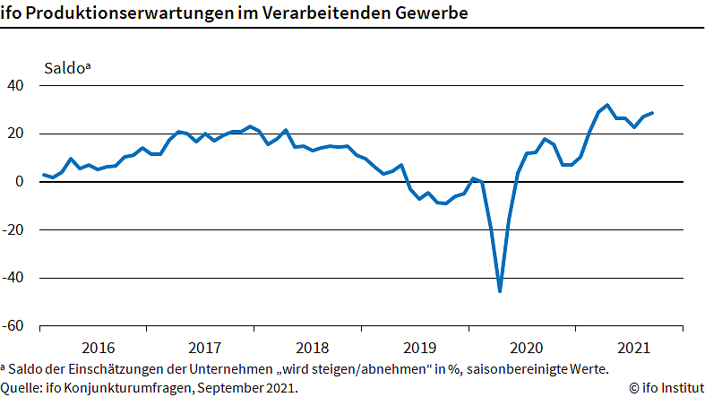 Die Produktionserwartungen der deutschen Industrie sind im September gestiegen. Das geht aus den Umfragen des ifo Instituts hervor. Der Wert erreichte im September 29 Punkte, nach 27 im August...