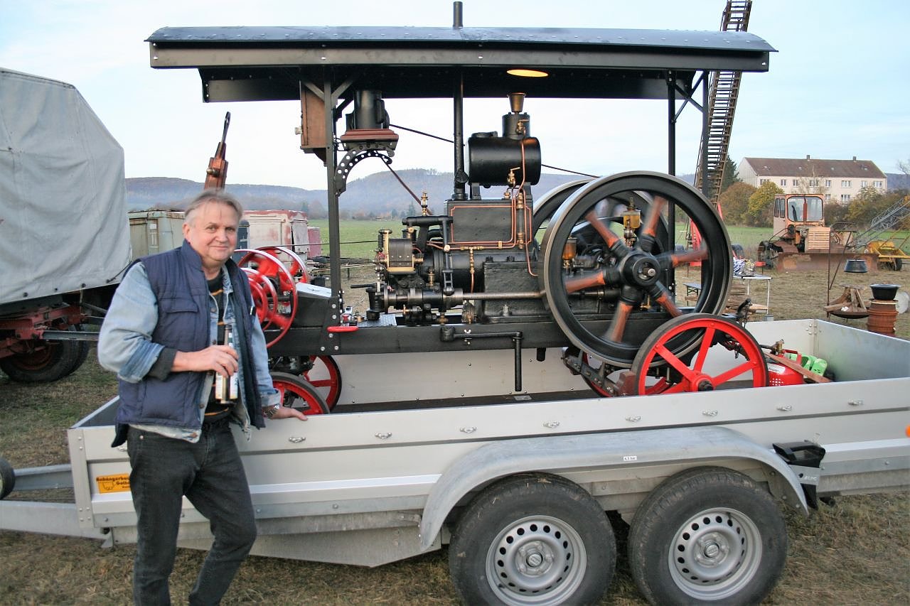 Sehr schön anzusehen war die Maschine von Werner Tölle aus Urbach. Er hat den Petroleummotor sehr aufwendig restaurieren müssen, damit er wie einst seinen Dienst verrichten kann. Er hat ihn auf Gasbetrieb umgebaut und treibt damit einen 24 Volt-Generator an. Leider weiß er bis heute noch nicht wo das Schmuckstück einst gebaut wurde, da ein Typenschild nicht mehr vorhanden ist. Aber was das Baujahr betrifft hat er eine Vermutung.