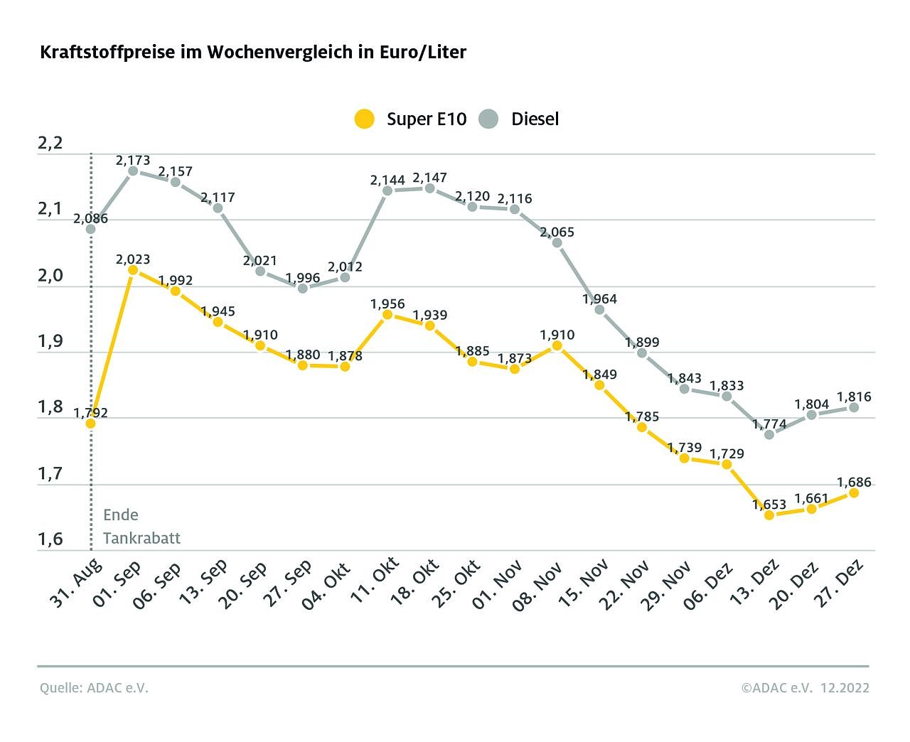 Zum Ende des Jahres müssen die Autofahrerinnen und Autofahrer erneut etwas mehr für ihre Tankfüllungen bezahlen. Wie die aktuelle ADAC Auswertung der Kraftstoffpreise in Deutschland ergibt, kostet ein Liter Super E10 derzeit im bundesweiten Schnitt 1,686 Euro...