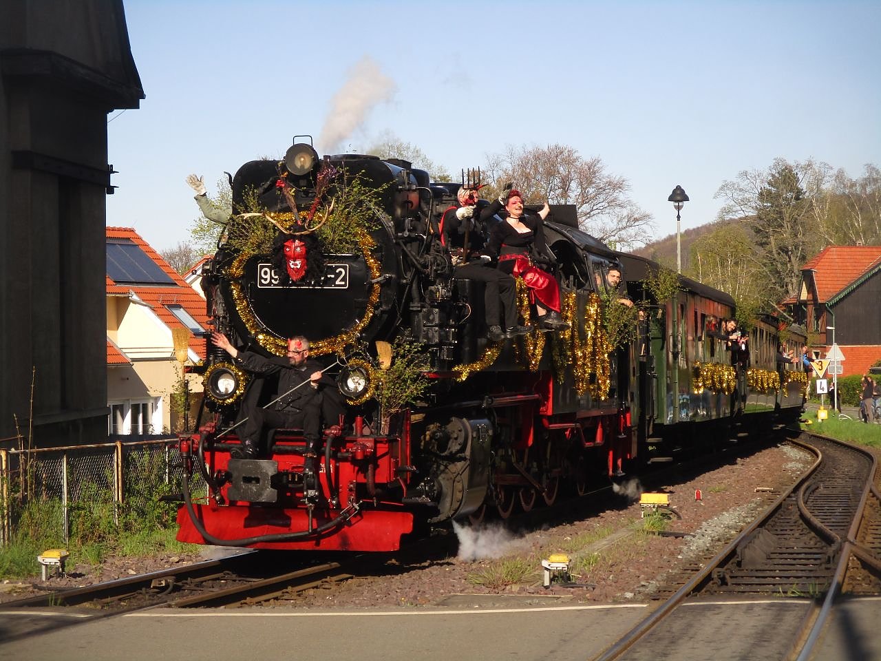Zu Walpurgis wurde auch die Harzquerbahn wieder herausgeputzt und geschmückt. Bernd Thielbeer hat die festliche Lok im Bild festgehalten...