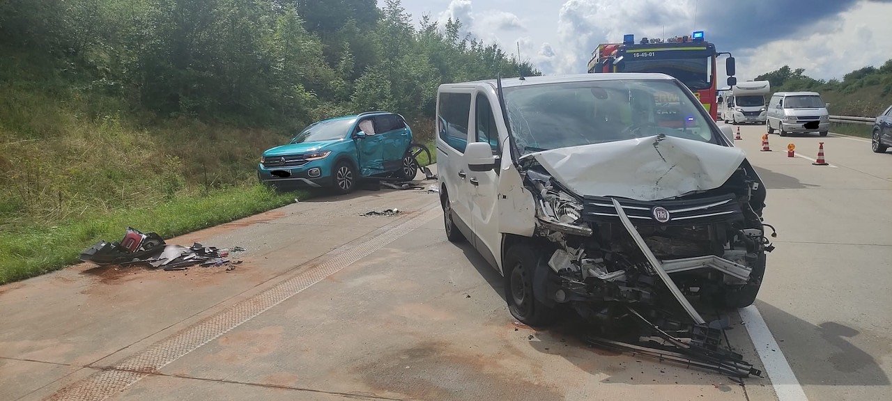 Die Beifahrerin im Fiat sowie die drei im Fahrzeug befindlichen Kinder wurden bei dem Unfall leicht verletzt. Deutlich härter traf es das Ehepaar in dem Pkw VW, in welchem der 60-jährige deutsche Fahrer schwer, und seine Beifahrerin sogar lebensbedrohlich verletzt wurden. Der 42-jährige deutsche Opelfahrer wurde ebenfalls leicht verletzt. Der Gesamtschaden beläuft sich auf rund 33.000 Euro.