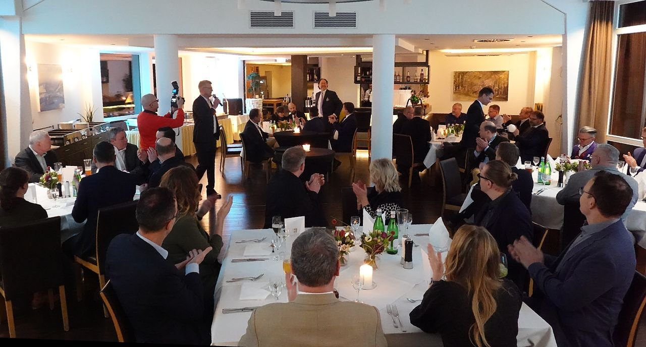 Carlo Knauf freute sich über die vielen Gäste, die auch die Zugehörigkeit und Verwurzelung des Unternehmens zur und in die Region dokumentieren würden. Man müsse sich aber auch der Klarheit stellen, dass weiterhin Naturgips zur Verfügung stehen müsse, wenn die Hälfte des bisherigen Gipsbedarfes aufgrund politischer Entscheidungen einfach nicht mehr zur Verfügung stehe. Mit dieser Ansage war dann das Buffet eröffnet. Diese Zeremonie oblag auch in diesem Jahr Sebastian Langer.