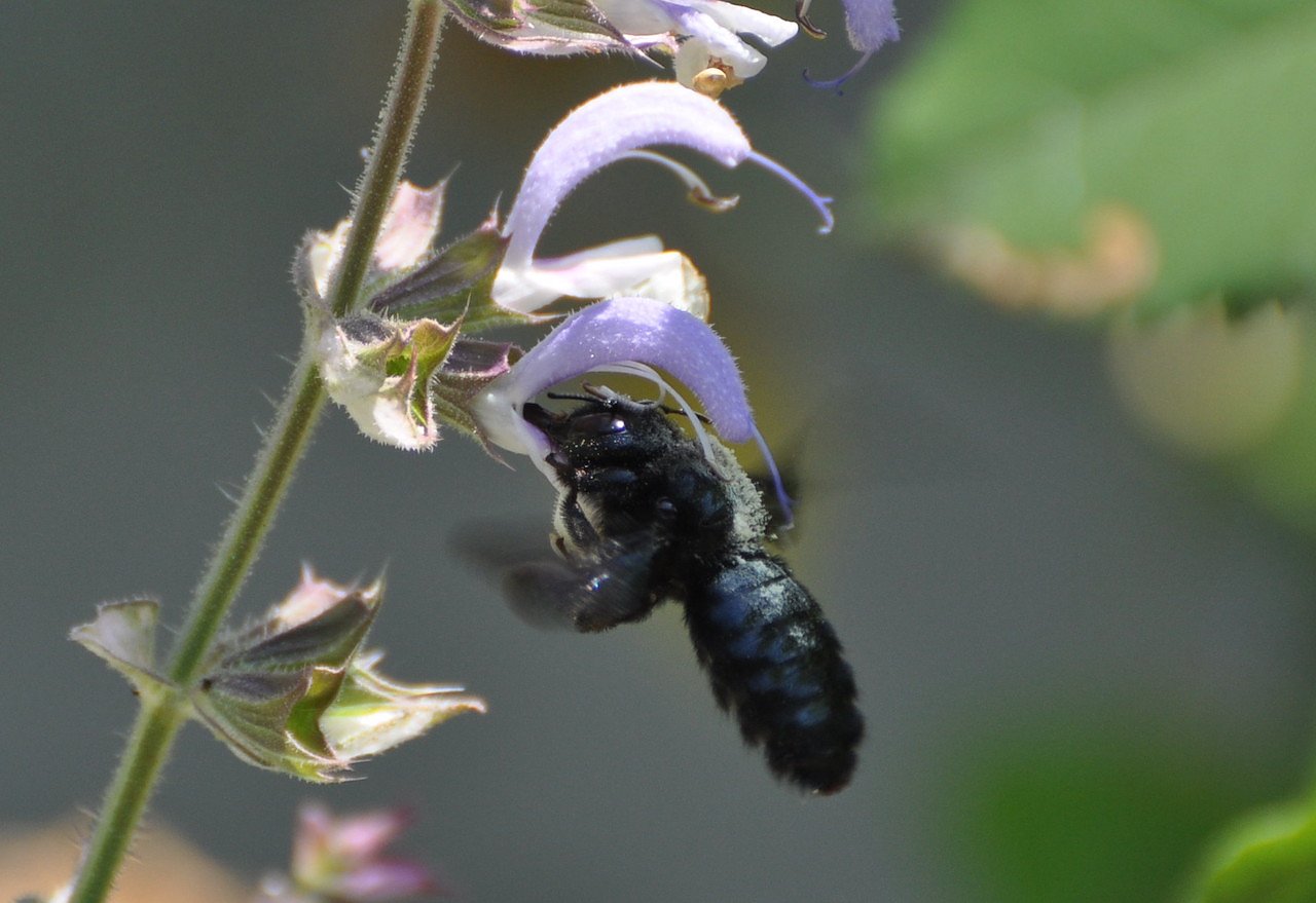 Eine blaue Holzbiene an einer Blüte (Foto: KlausSchmidt) Eine blaue Holzbiene an einer Blüte (Foto: KlausSchmidt)