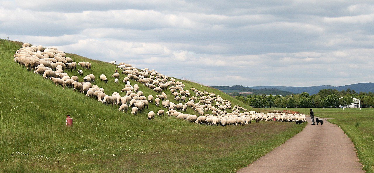 Zur Zeit ist ein Schäfer mit seiner Schafherde am der Staumauer des Helme-Stausees bei Kelbra im Einsatz. An die 500 Tiere erledigen die Mahd schonend und umweltgerecht.