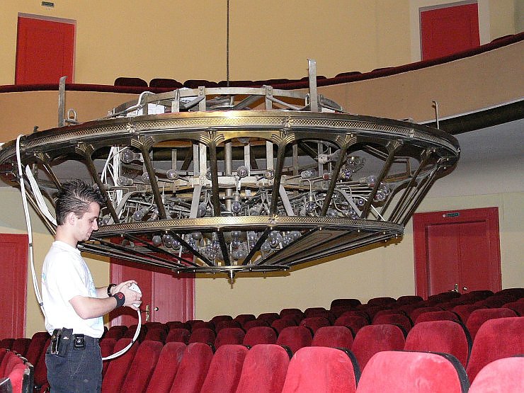 In den eigenen vier Wänden gehört das Putzen von Lampe oder das Wechseln von Glühlampen sicherlich nicht zu den besonderen Herausforderungen des Alltags. In einem Theater ist das schon anders. Da gibt es Dinge, die sind fast unerreichbar, wie beispielsweise der riesige Kronleuchter im Zuschauerraum...
