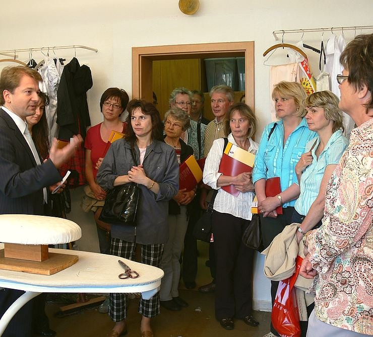 Sie nutzten zugleich am Nachmittag noch die Möglichkeit, einen Blick hinter die Kulissen zu werfen, konnten einen Blick in die Maskenbildnerei und in die Schneiderei riskieren und ließen sich vom Intendanten auch in die Kulisse der Oper La Bohème mitnehmen, die im Anschluss an die Führung auf dem Programm stand.