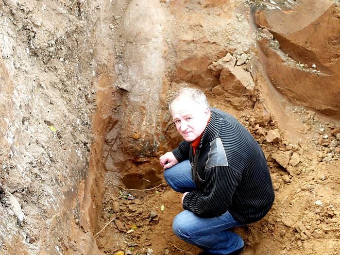 Autor: nnzBei begleitenden Maßnahmen im Zuge der archäologischen Untersuchungen ist gegen 12.30 Uhr der Blindgänger entdeckt worden. Wie Sprengmeister Andreas West der nnz sagte, handelt es sich um eine englische Fliegerbombe, einer GB 500 lb. Die Bombe wiegt seinen Angaben nach 227 Kilogramm. Wie der Sprengmeister weiter sagte, muss ab 14 Uhr die Innenstadt in einem Umkreis von 500 Metern evakuiert werden. Dazu gehören unter anderem zwei Altenheime sowie die Stadtverwaltung und mehrere Geschäfte.