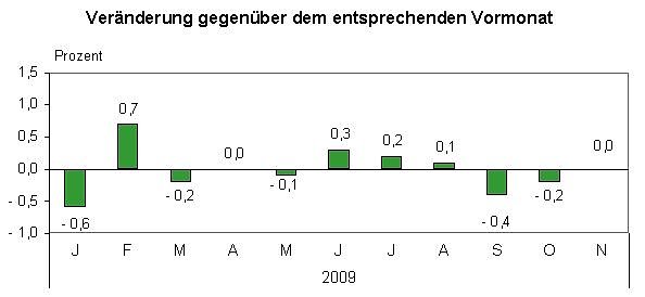 Im Bereich Verkehr ziehen die Preise sowohl im Vergleich zum Vormonat (0,8 Prozent) als auch im Jahresvergleich (2,0 Prozent) wieder an. Spürbar wahrgenommen, die Verteuerung der Kraftstoffpreise um 3,4 Prozent gegenüber dem Vormonat Oktober und um 3,8 Prozent im Vergleich zum November 2008.