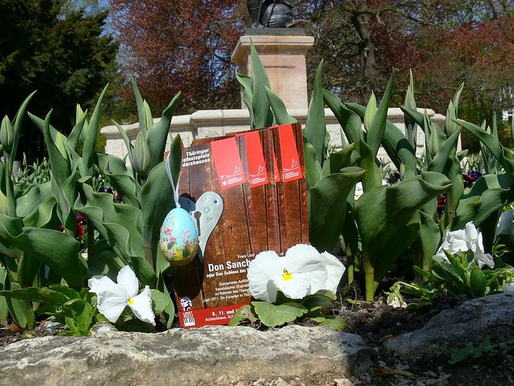 Wer also am Ostersonntag an diesen Orten spazieren geht, kann mit ein bisschen Glück eines der wunderschönen knallroten Herzen entdecken, die mit besonderem Inhalt gefüllt sind. Sie enthalten verschiedene Ermäßigungsgutscheine für die konzertante Opernaufführung Don Sanche oder Das Schloss der Liebe, die an drei Abenden im Juni im Achteckhaus in Sondershausen stattfindet.